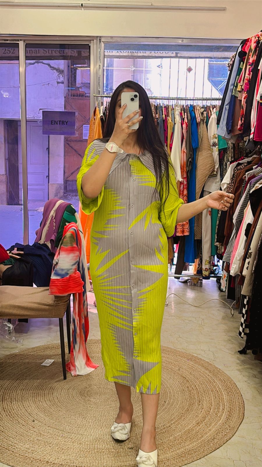 Denim cotton full embroidery dress. Relaxed fit.
