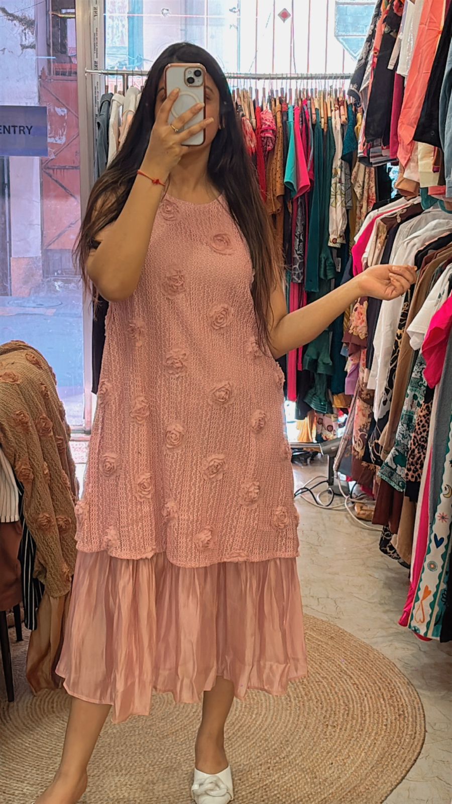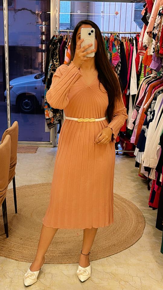 Imported fabric dress with pearl work all over.